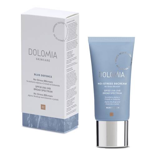 DOLOMIA No-stress BBcream 02 Descrizione Una crema colorata che difende la pelle dagli agenti che promuovono l'invecchiamento. Uniforma e illumina l'incarnato mantenendo un aspetto fresco e naturale mentre protegge da smog, stress termico e raggi UV. scutellaria alpina e rododendro antiossidante sono gli attivi dolomitici che caratterizzano questo prodotto. Filtri SPF30 proteggono dai raggi UV, pigmenti soft focus illuminano il colorito e uniformano l'incarnato. Per una pelle protetta, radiosa e idratata. Ideale per perfezionare l'incarnato delle pelli di tutte le età. Protegge, uniforma e illumina. Libera da siliconi e oli mineral...